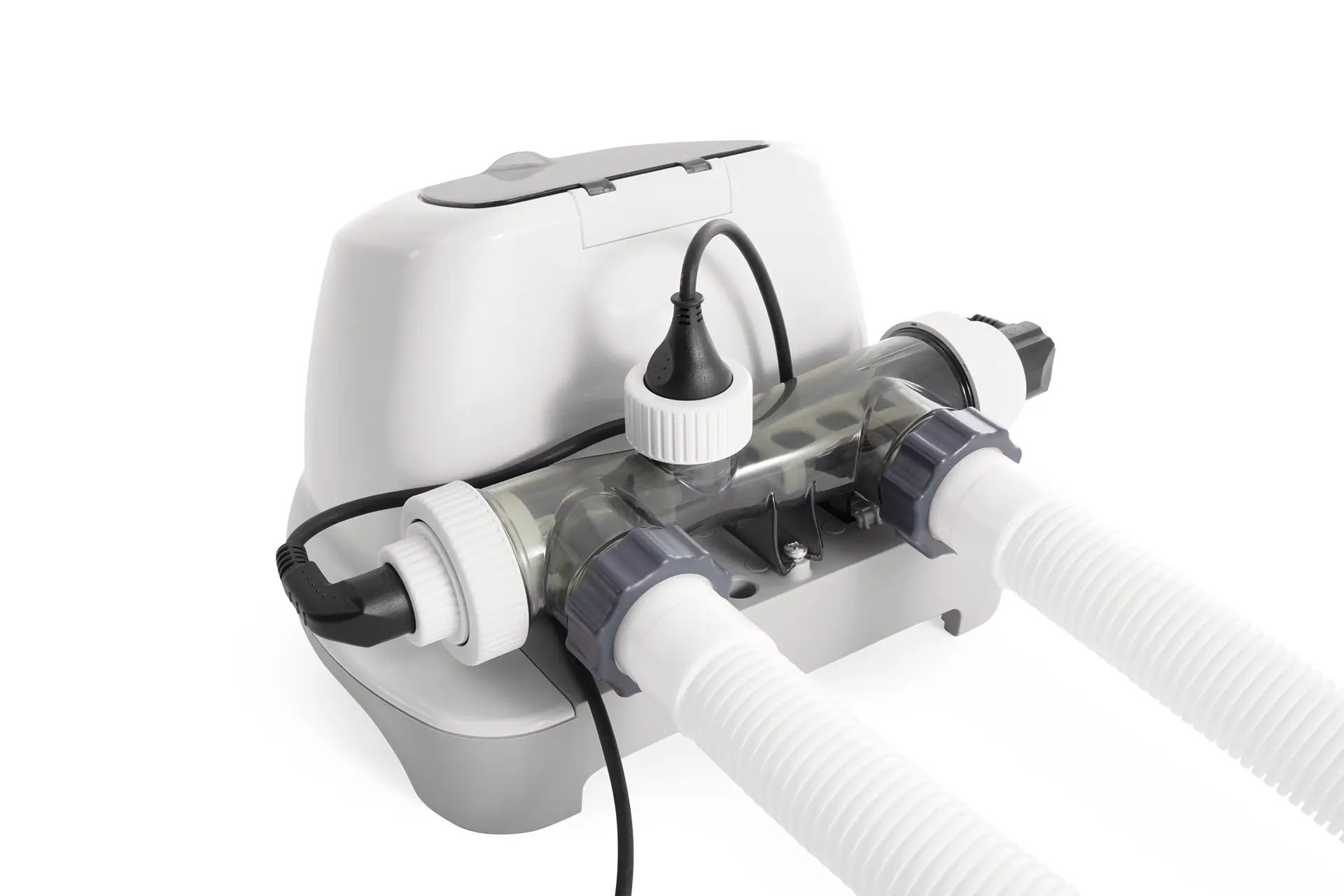 Tuzlama makinesi havuz suyunu temiz tutar. Minimum miktarda doğal tuz kullanarak havuz suyundaki bakteri ve yosunları ortadan kaldırır. Tuz kullanmak, klor tabletleri kullanmaktan daha ekonomik ve çevre dostudur. Tuzlama makinesini filtreleme pompasına bağlamanız yeterlidir; elektroliz sayesinde kristal berraklığında su elde edersiniz.